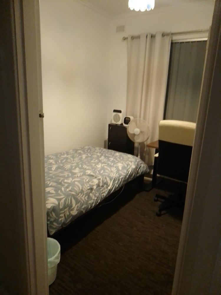 The room is small with a single bed, wardrobe and desk. The person would have full access to the house (kitchen/dining room, lounge room and large garden in the rear). There is a laundry with a modern washing machine. The house is very close to a terminal bus stop (H33) that goes straight into the city (North Terrace). Buses usually run every 20 minutes
